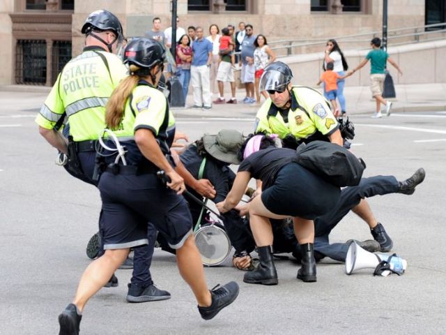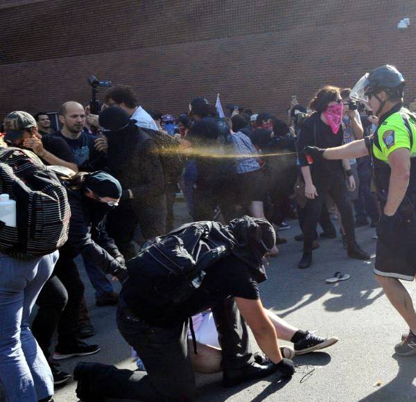 La policía arrojó gas pimienta sobre los contramanifestantes y realizó varios arrestos.