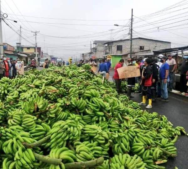 Los agricultores de banano cerraron la vía E25, a la altura de la parroquia rural San Juan de Puebloviejo, y la vía Quevedo-Valencia (provincia de Los Ríos) con numerosos racimos de banano. Lo mismo ocurrió en otras vías de la zona rural del Guayas, donde se evidenció bananos regados sobre el asfalto.