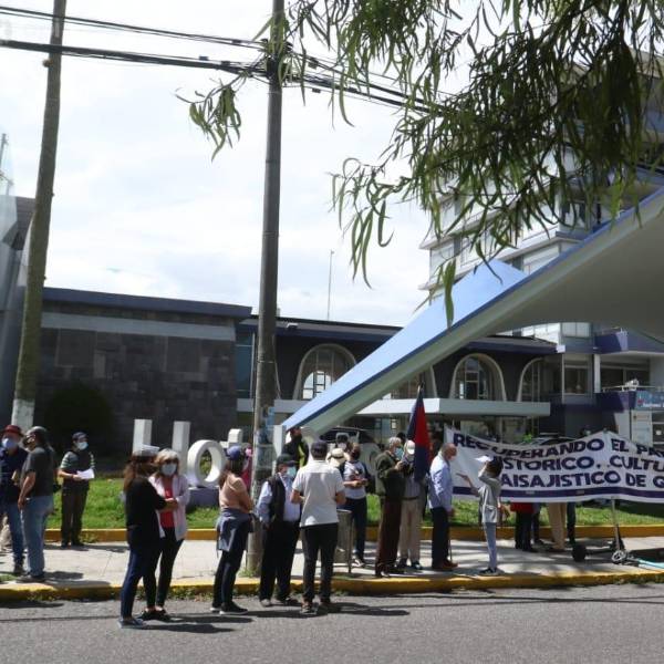 Los vecinos de los barrios González Suárez, La Floresta y Guápulo se reunieron con pancartas y consignas para rechazar el derrocamiento de paredes en el hotel, pues consideran atentatorios contra el hotel.