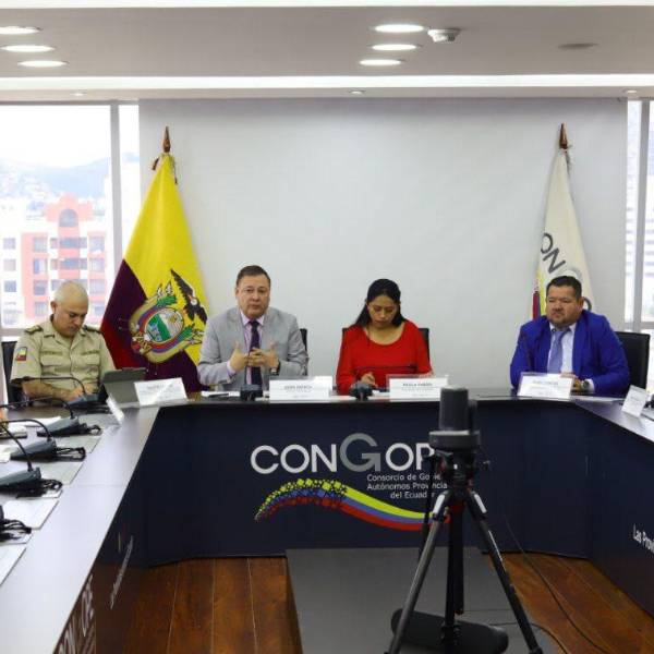 El anuncio se emite tras una reunión a la que asistieron Juan Zapata, ministro del Interior; el Cmdt. Salinas, Paola Pabón, prefecta de Pichincha, Pabel Cantos, titular de la Asociación de Municipalidades del Ecuador y los representantes de los Gobiernos Autónomos Provinciales del Ecuador (Congope) y de los Gobiernos Parroquiales Rurales del Ecuador (Conagopare).