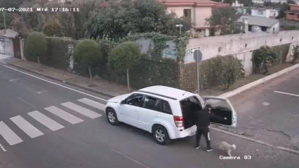 La acción quedó registrada por una cámara de seguridad del sector, en la que se observa a un sujeto detenerse en mitad de la calle en un vehículo Grand Vitara SZ; luego se dirige hacia la cajuela, abre la puerta y empuja a un peludo de color blanco hacia la calle. Tras la acción, el hombre arranca la marcha del vehículo ante la confusión del animal que hace un intento por seguir al carro.