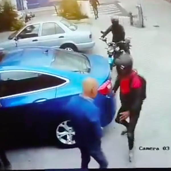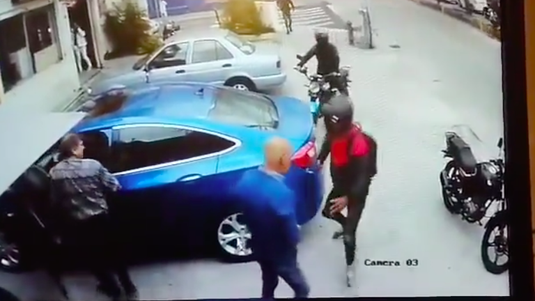 En un video viral de redes sociales, se observa a la víctima conversando con un amigo mientras se acerca a su auto. Entonces, llegan tres sujetos en moto y empiezan a amedrentar.