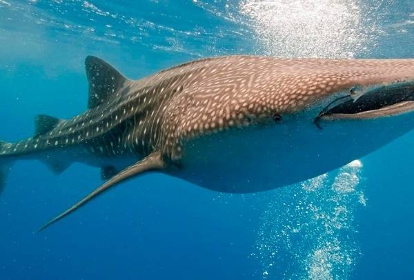 El tiburón ballena "es el pez más grande del mundo", algunos individuos pueden medir más de 15 metros de largo, y tiene el vientre blanco y la parte dorsal de color gris con manchas blancas, detalló.