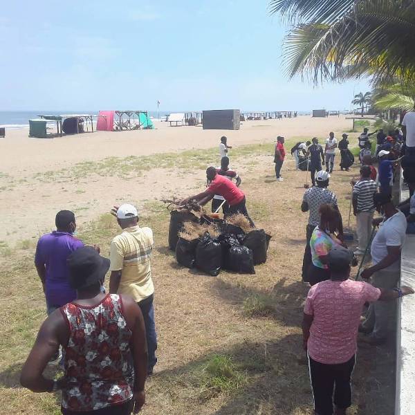 Alrededor de 30 privados de la libertad participaron este lunes 14 de marzo de una actividad para recolectar botellas, maleza, restos de madera y otro tipo de residuos, en el balneario Las Palmas, ubicado en el norte de la ciudad de Esmeraldas.