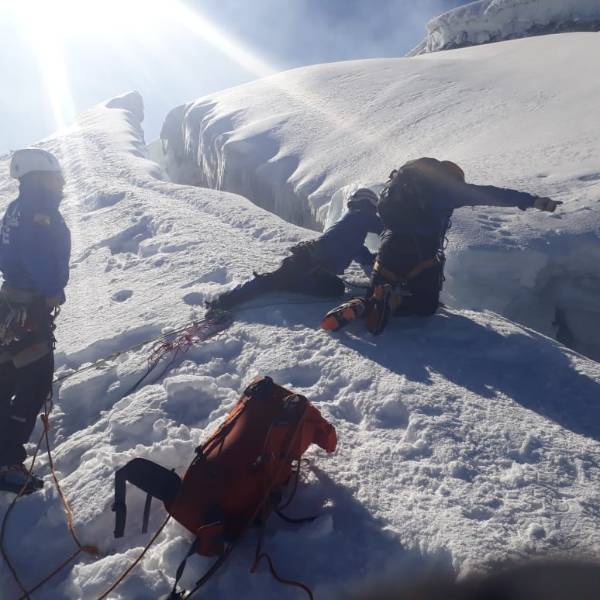 Según información de los organismos de primera respuesta, "el grupo de excursionistas cruzó un puente natural de hielo, en ese momento se abrió una grieta, ocasionando la caída de tres personas".