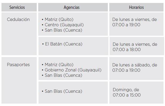 El Registro Civil del Ecuador amplió por una semana más el horario de atención en las ciudades de Quito, Guayaquil y Cuenca para el servicio de emisión de cédulas y pasaportes ordinarios.