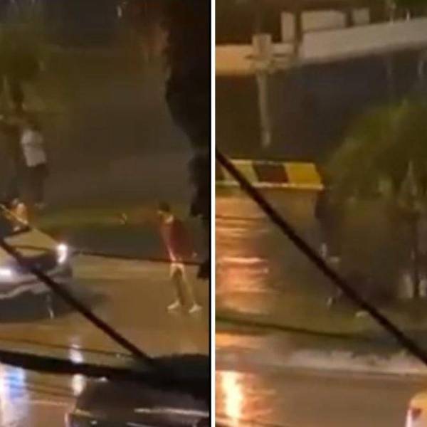 Durante las amenazas, quien conduce el vehículo logra acelerar y sortear a los ladrones, según se observa en la grabación. Al notar su operación fallida, los sujetos cruzan la misma avenida en sentido contrario.
