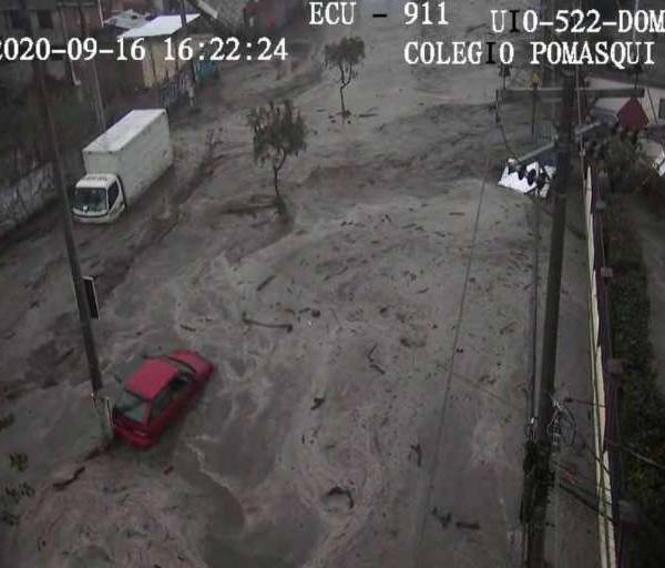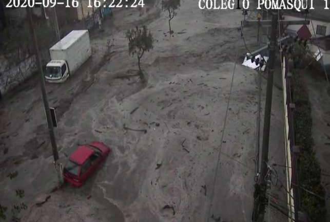 Producto de la fuerte lluvia de este miércoles 16 de septiembre de 2020 en Quito, se ocasionó un desbordamiento de quebrada en Pomasqui, ciudadela Señor del Árbol, en el norte de la capital.