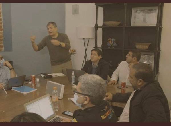 En un video que circuló con las fotos se escucha a Andrés Arauz decir que si se le va a dar 400 dólares a una persona, resulta mejor contratarla, ante lo cual Correa responde pero no se logra comprender lo que dice.