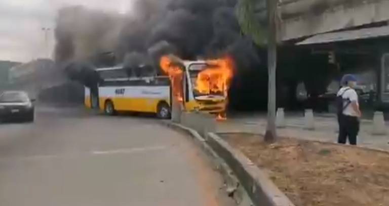 Bus de Panorama se incendió en Av. Pedro Menendez Gilbert, centro de #Guayaquil a la altura de estación Metrovia Atarazana pic.twitter.com/4ETpXYjale