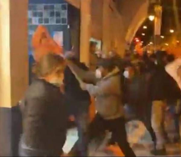 Los simpatizantes también agredieron a los ciudadanos. Videos subidos en redes sociales registraron altercados violentos en una peluquería, ubicada en las calles Veloz y Carabobo, y también en un local en la 10 de Agosto y España donde un grupo de transeúntes fueron agredidos con banderazos.