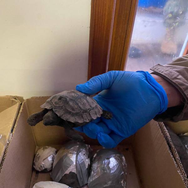 En una de estas se transportaban cinco sacos plásticos que contenían -cada uno- cinco iguanas doradas. Además, se hallaron nueve cajas de cartón con 84 tortugas terrestres gigantes.