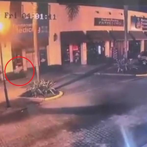 Una cámara de videovigilancia, ubicada en la plaza comercial de la urbanización, captó el instante en que tres sujetos armados llegaron al sitio, a bordo de una motocicleta.