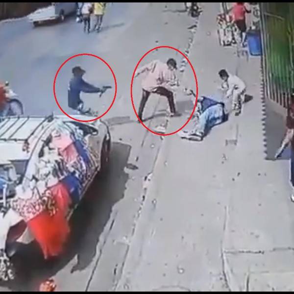 El video registró el instante en que uno de los sicarios disparó varias veces en la cabeza de la víctima, luego llegó un acompañante y lo acribillaron juntos.