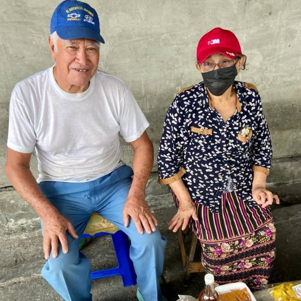 Dos manabitas de la tercera edad venden productos de su tierra en Guayaquil, no se quejan, no piden ayuda de nadie, solo quieren trabajar y compartir con la gente “hasta que el cuerpo aguante”.