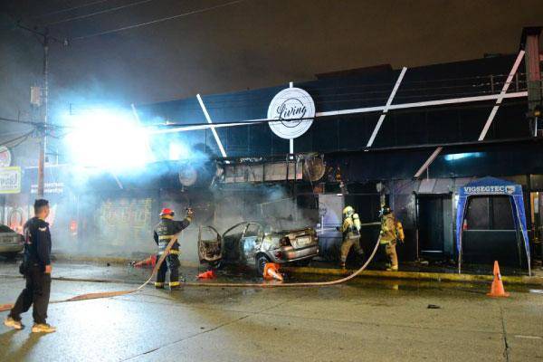 Posteriormente, los delincuentes incendiaron la entrada de la discoteca y el auto en el que se movilizaban.