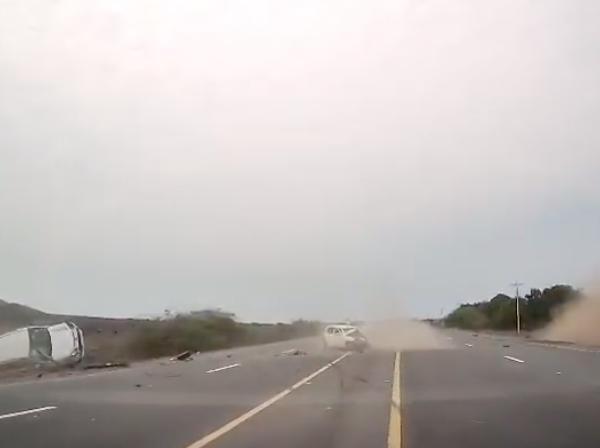 El carro impactado por el temerario sujeto dio vueltas y golpeó a otro vehículo en el carril contrario. El tercer vehículo impactado, que regresaba de Santa Elena a Guayaquil, destruyó un pequeño negocio con carpa.
