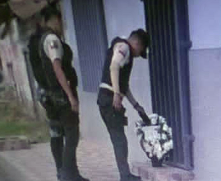 Alrededor de las 20:00, el burgomaestre dio aviso a la Policía sobre el temerario regalo que yacía en los exteriores de su vivienda. Los agentes levantaron los indicios para comenzar las investigaciones.