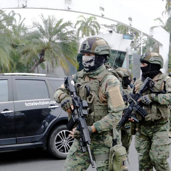 Este martes 9 de enero, el Ejecutivo declaró a estas bandas como objetivos militares. "Estamos en un estado de guerra y no podemos ceder ante estos terroristas", señaló Noboa en su primera intervención pública desde el estallido de esta crisis de inseguridad, iniciada con la fuga de la cárcel de Adolfo Macías 'Fito', líder de la banda criminal Los Choneros.