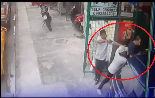 En las imágenes aparece el hombre, a quien se lo ve intercambiando palabras con dos sujetos (uno de ellos luce una vestimenta similar al de la Policía), y por último llega al sitio un tercer implicado. Al final se ve cómo apuntan a la víctima con armas de fuego.