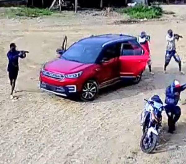 Una cámara de seguridad dentro de la zona registró el momento del ataque, en el que los gatilleros tomaban cobertura detrás de un taxi que estaba parqueado frente a la casa y disparaban en repetidas ocasiones.