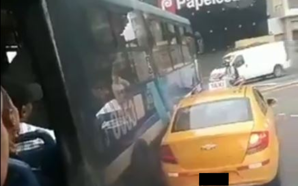 Taxista choca a un bus de la Metrovia en Guayaquil y el conductor de la unidad de Metro Bastión persiguió con todo y pasajeros al culpable del impacto.