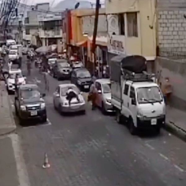 En el video, viralizado en redes sociales, el uniformado se sostiene con fuerza en el capó del vehículo mientras este circula por las calles Pedro Carbo y Clemente Ballén, en el centro de Guayaquil, mientras ciudadanos lo recriminan por su accionar.