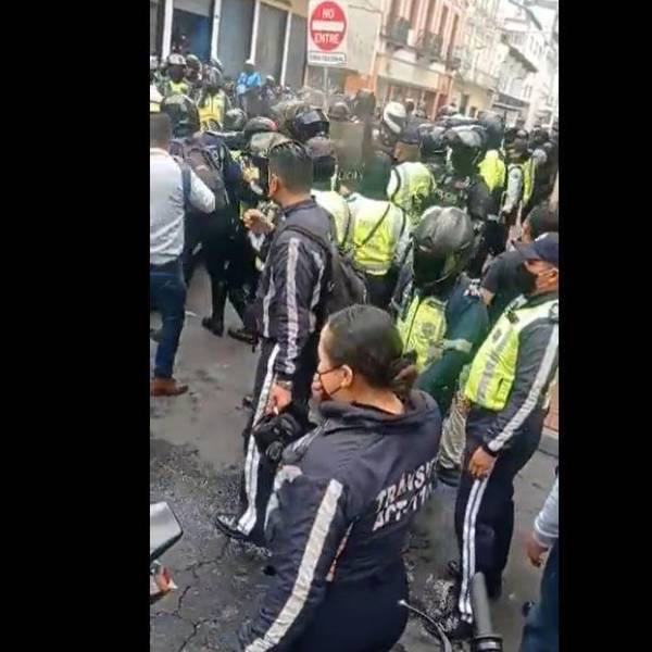 Miembros de la Policía Nacional y de la Autoridad Metropolitana de Tránsito (AMT) protagonizaron un fuerte altercado este jueves 9 de junio de 2022, en el centro histórico de Quito.