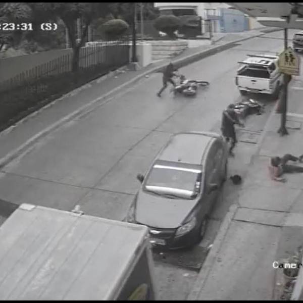 En las imágenes se observa la persecución de los policías a los sospechosos. Los presuntos sicarios que se movilizaban en una motocicleta abandonaron ese medio de transporte en mitad de la calle para darse a la fuga a pie.