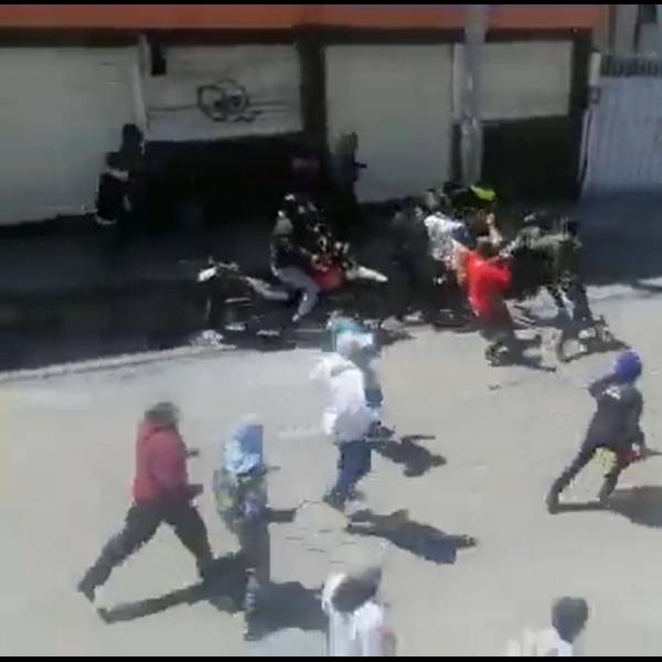 En un video se puede ver a una muchedumbre con palos y piedras corriendo detrás de un grupo de policías, mientras los agentes huyen para evitar ser agredidos por la gente.
