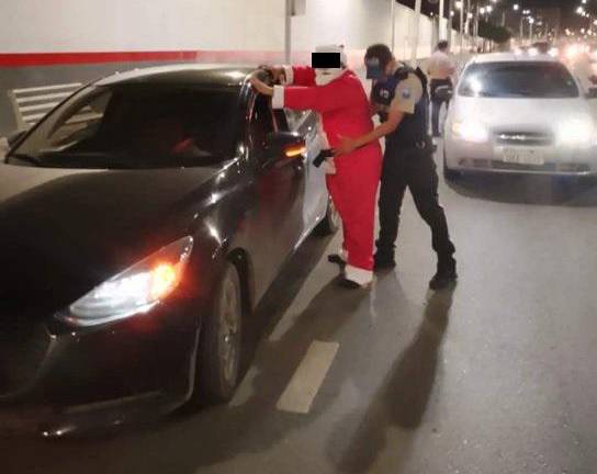 Ni Papá Noel se salvó de un operativo policial en Manta, provincia de Manabí. El vehículo en el que se movilizaba fue detenido por los uniformados.