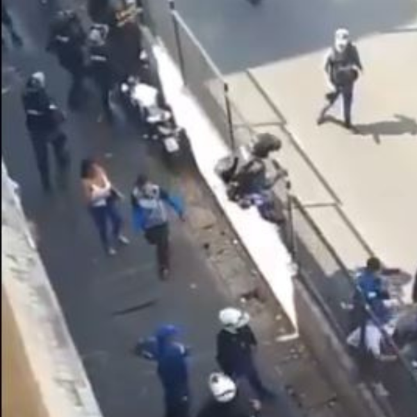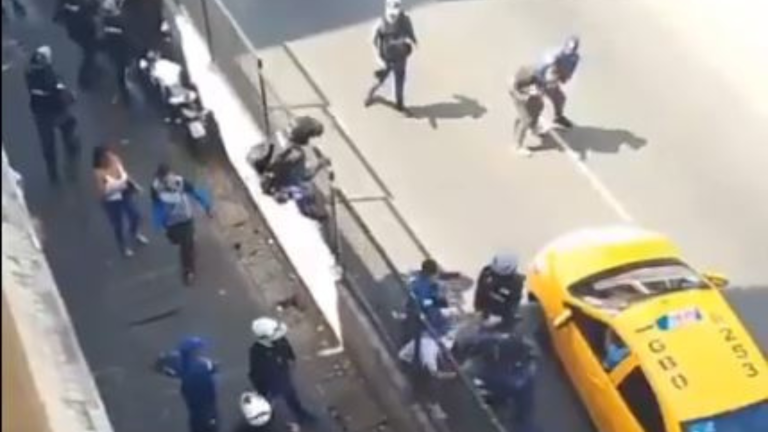 En tan solo segundos la situación desescala y los hombres implicados en el ataque abandonan la escena, mientras varios uniformados comienzan a controlar el tráfico, que se había ralentizado ante la escena.