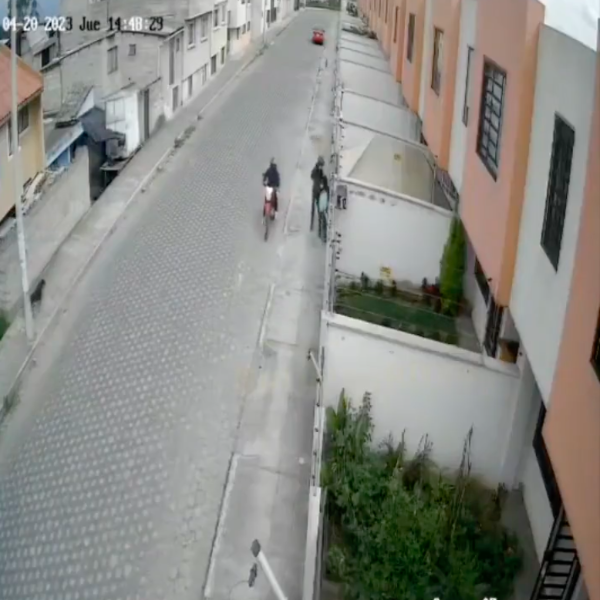 Sucedió el pasado jueves, 20 de abril de 2023, a las 14:48, en una zona del norte de Quito. Según se observa en el video de la cámara de seguridad, la niña caminaba tranquilamente por la vereda de un conjunto habitacional.