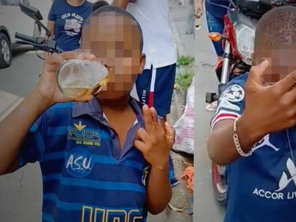 Aparentemente, las imágenes fueron capturadas en una calle del sector Las Malvinas, sur de Guayaquil. En un video se puede ver a dos niños bailando y tomando cervezas en medio de varios adultos, mientras que la persona que los graba los alienta a libar.