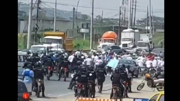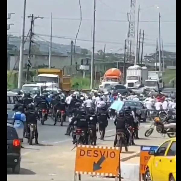 Una caravana de motorizados fue al sitio a reclamar el retorno de "Fito" (líder de la banda delincuencial "Los Choneros") a la Penitenciaría del Litoral, de donde fue sacado este fin de semana por ser considerado de alta peligrosidad.