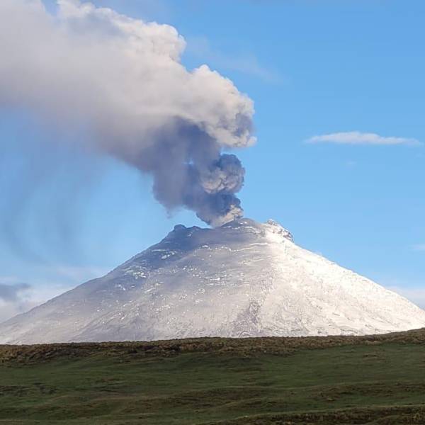Adicionalmente, desde las 06h50, en imágenes satelitales se observa una columna de ceniza que alcanza aproximadamente 800 metros sobre el cráter y se dirige hacia el sureste del Cotopaxi.