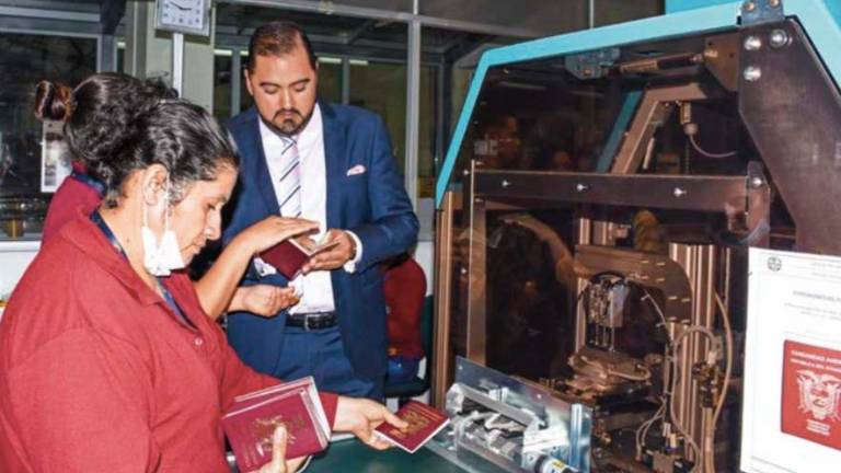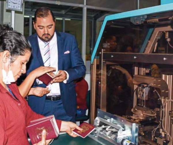 En la demostración que hizo el Registro Civil con el presidente Moreno, la nueva impresora graba, imprime, verifica y lamina los pasaportes biométricos instantáneamente. Así que diariamente se podrían imprimir cientos. Son tres máquinas que ya se instalaron en Quito para este fin. Para noviembre, se adecuarán en Guayaquil y Cuenca, explica Christian Chacha, coordinador general de Servicios del Registro Civil.