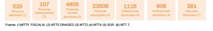 La Fiscalía General del Estado, entidad que difunde la lista de fallecidos identificados tras el terremoto, también realizó una actualización de este listado.