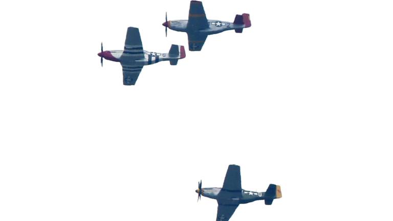 Miles de veteranos y curiosos se congregaron al mediodía para ver el espectáculo aéreo y aviones claves para inclinar la contienda bélica en favor de los Aliados, como los bombarderos B-17 o los cazas P-51 Mustang.
