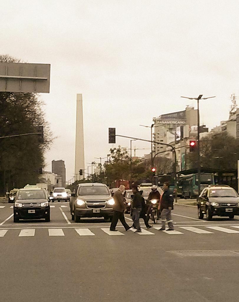 "A quienes van al centro a estas horas de la mañana les advertimos que el tráfico va más lento de costumbre por la curiosidad que despertó la rebanada que le pegaron al Obelisco", avisó el comentarista de una radio local.