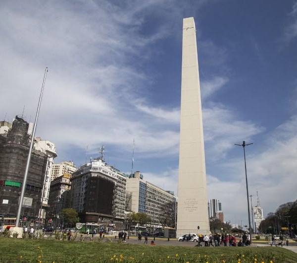 La punta al cielo del monumento más emblemático de la ciudad apareció el domingo ni más ni menos que en la explanada del Museo de Arte Latinoamericano de Buenos Aires (Malba), a cuatro kilómetros de su lugar original, y con la posibilidad de entrar y mirar por las ventanas como si estuviera de verdad a 70 metros de altura.