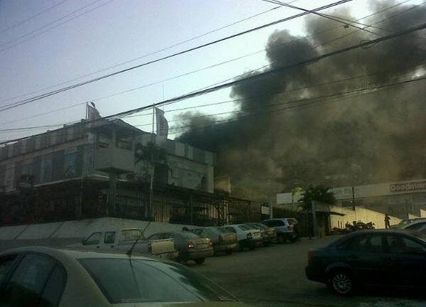 Un nuevo incendio se registró la tarde de ayer al norte de Guayaquil, en las bodegas de los Almacenes Juan Eljuri, ubicadas en la avenida Carlos Julio Arosemena. El pasado 16 de octubre otro siniestro, causado por un cortocircuito, consumió esas mismas bodegas donde se guardaba material plástico y suministros de oficina. Las autoridades del Cuerpo de Bomberos informaron que esta vez se trató de un accidente producido durante la remoción de escombros. Miembros de la Comisión de Tránsito del Ecuador (CTE) cerraron uno de los carriles de la avenida para evitar la congestión vehicular.