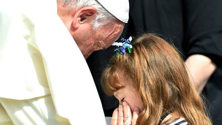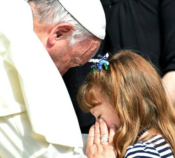 La niña, que vive en Ohio (EEUU), asistió a la audiencia general que el papa Francisco ofreció hoy en la Plaza de San Pedro del Vaticano y, al término, pudo saludarle e intercambiar con el pontífice unas palabras.