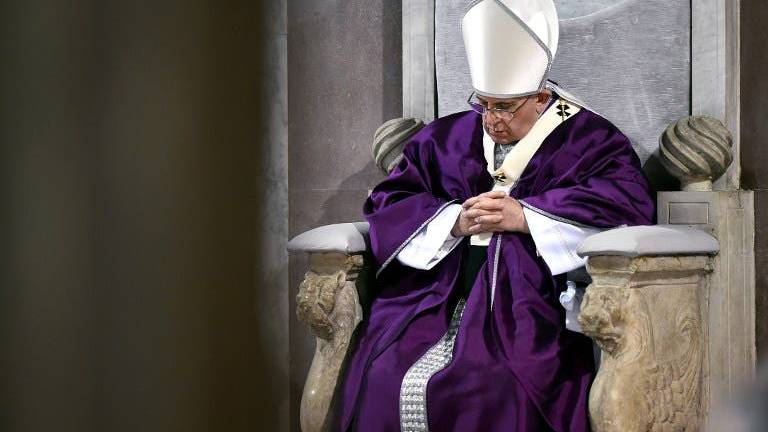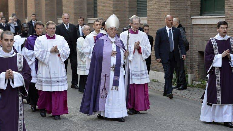 Este miércoles de ceniza, el segundo del pontificado del papa Bergoglio, se inició con la procesión entre los dos templos situados en la colina romana del Aventino y el papa caminó ataviado con una capa pluvial morada, color que indica preparación ante la llegada de la Semana Santa,