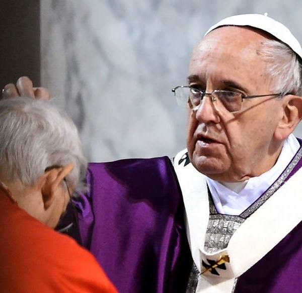Ya en la basílica de Santa Sabina, en el monte romano del Aventino, el papa comenzó la ceremonia de imposición de las cenizas, pero antes