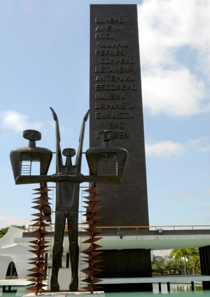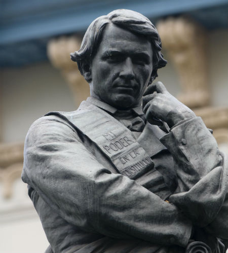 En el centro de la Plaza se encuentra el monumento de Antonio José de Sucre, prócer de la independencia.