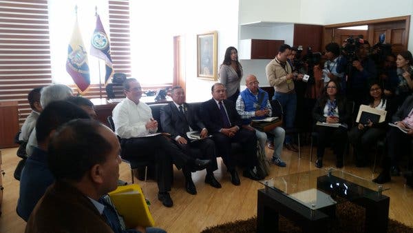 Esta reunión se da a raíz de la confirmación del débito de USD 41 millones a la institución, por un sobreprecio pagado a esa entidad militar por parte del Ministerio del Ambiente, por la compra de 66 lotes de terrenos en el sector de Samanes..@RicardoPatinoEC: Deben saber que aquí tienen las puertas abiertas para el diálogo. pic.twitter.com/0uobeEhlHw