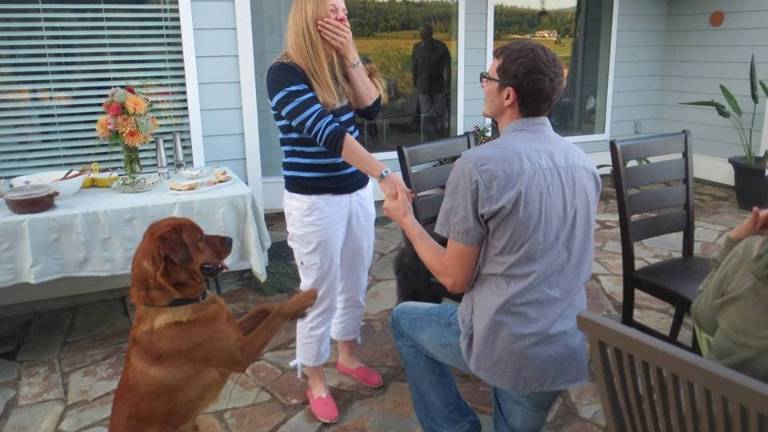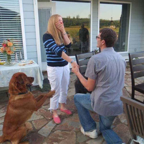 Los canes, muchas veces están presentes en momentos importantes de la vida de sus amos, como las propuestas matrimoniales-