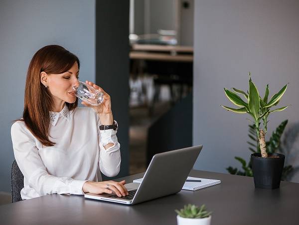 La hidratación es fundamental para el sano funcionamiento de nuestros cuerpos. Lo óptimo es beber periódicamente, a lo largo del día, agua natural. “Si su trabajo implica estar en reuniones todo el día, puede llevar consigo un termo o botella con agua, de preferencia alcalina”, señala Calderón. En general, lo ideal es consumir de 2 a 3 litros de agua diariamente.