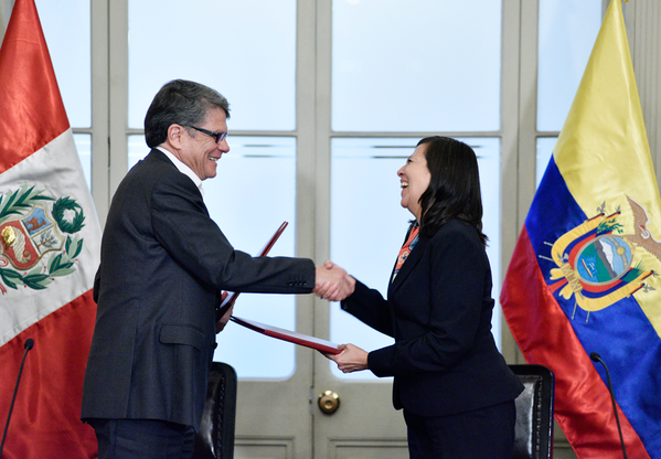 La canciller peruana, Ana María Sánchez, y el canciller subrogante de Ecuador, Xavier Lasso, encabezaron este 8 de septiembre de 2015 la XIV Reunión de la Comisión de Vecindad Peruano-Ecuatoriana en Lima para pasar revista a los ejes de desarrollo de la zona de integración fronteriza.